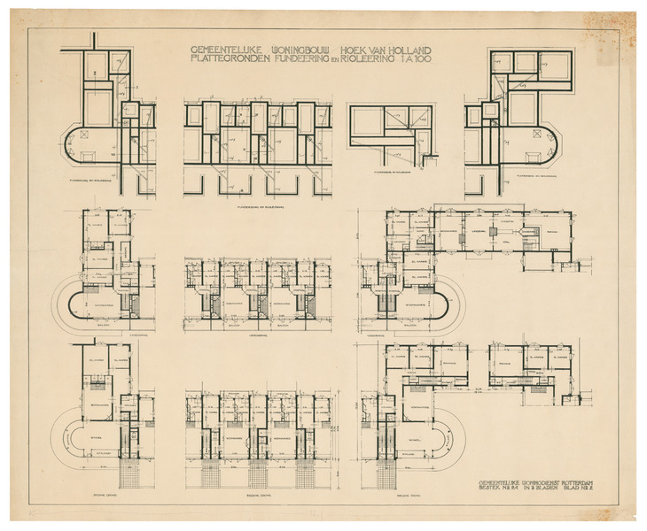 Vanwege de Eerste Wereldoorlog ligt in heel Nederland de bouw van woningen nagenoeg stil, waardoor er overal grote woningnood ontstaat. In 1917 wordt daarom in Rotterdam de Gemeentelijke Woningdienst opgericht. Ook in Hoek van Holland is er behoefte aan woningen, vooral aan betaalbare arbeiderswoningen. Woningbouw en verhuur door particulieren is niet voldoende om het tekort op te heffen. In 1924 komt de Woningdienst met een plan voor 40 woningen met 4 winkels en 4 pakhuizen aan de 2e Scheepvaartstraat. De woningen zijn ontworpen door de architect van de woningdienst, J.J.P. Oud* (1890-1963). Hij was lid van de kunststroming De Stijl en ontwierp onder andere café De Unie in Rotterdam en het Nationaal Monument op de Dam.